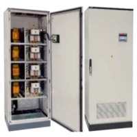 - Регуляторы, частотные преобразователи. Устройства, которое отвечает за регулирование коэффициента мощности. Регулятор измеряет и поддерживает величину cosφ на заданном оптимальном уровне путём выдачи команд на исполнительные устройства контакторы. В составе регулятора есть процессор контролирующий напряжение, уровень гармоник, температуру, состояние конденсаторных секций.